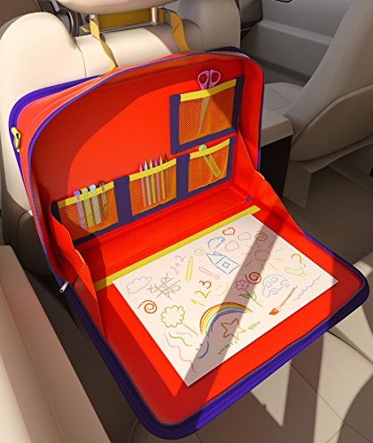 The Original Kids Travel Tray and Backseat Car Organizer. Holds Crayons Markers, iPad, Kindle, Tablet and Device Holder. For Road Trips and Air Travel....