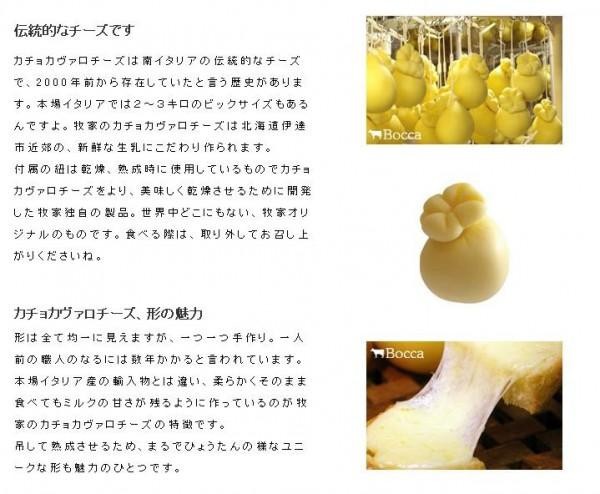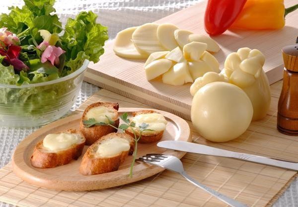 | 職人の手によって1つ1つ丁寧に成型された、セミハードタイプのチーズです。原料には、牧家の牧場と伊達市近郊産の新鮮な生乳を使用しました。そのまま食べると凝縮されたミルクの旨みが、また加熱すると、とろけて伸びるチーズに変身!!様々な料理に大活躍です。 |
