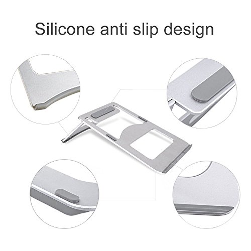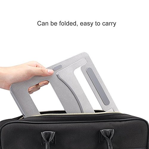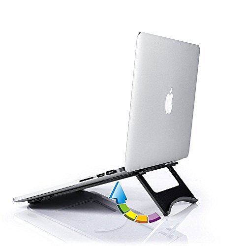 SOLID, FOLDABLE, COOL- Easily fold and slip this compact laptop stand in your bag and take from home, to office, to store, and back! Don’t worry bending or breaking, because it’s made of tough STUFF! The Aluminum Alloy stand naturally dissipates heat to air faster than plastic or wooden laptop support without the use of battery power or electricity.