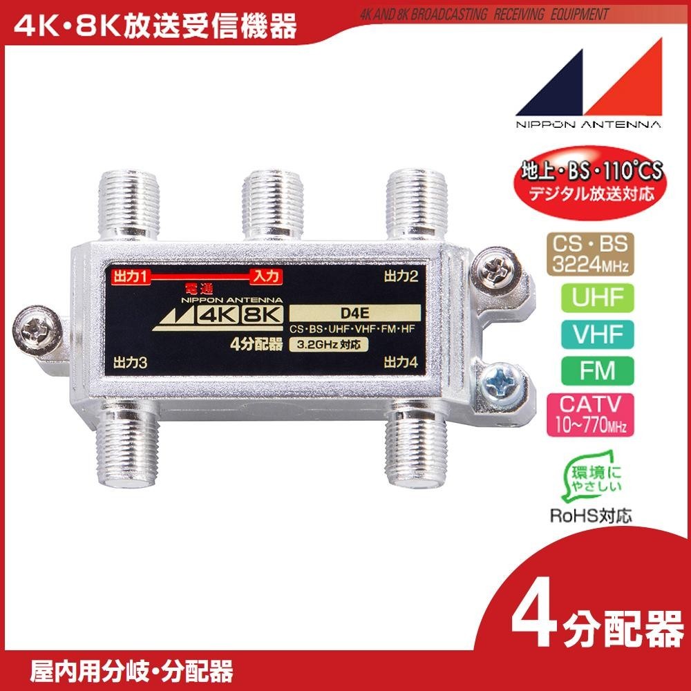 | 仕様 | 屋内用・4分配器 地上・BS・110度CS デジタル放送対応 CS(3224MHz)・BS・UHF・VHF・FM・CATV(10~770MHz) RoHS対応 入力-出力1 電通端子 最大DC15V・0.8A、AC30V・1A 入出力インピーダンス:75Ω(F型) 使用温度範囲:-10~+40 ●周波数帯域10~76MHz 分配損失:8.5dB以下 端子間結合損失:16dB以上 電圧定在波比(VSWR):2.0以下 ●周波数帯域76~222MHz 分配損失:8.0dB以下 端子間結合損失:23dB以上 電圧定在波比(VSWR):1.8以下 ●周波数帯域222~770MHz 分配損失:8.2dB以下 端子間結合損失:20dB以上 電圧定在波比(VSWR):1.8以下 ●周波数帯域770~1489MHz 分配損失:9.4dB以下 端子間結合損失:15dB以上 電圧定在波比(VSWR):2.0以下 ●周波数帯域1489~2150MHz 分配損失:11.0dB以下 端子間結合損失:15dB以上 電圧定在波比(VSWR):2.0以下 ●周波数帯域2150~2681MHz 分配損失:12.0dB以下 端子間結合損失:15dB以上 電圧定在波比(VSWR):2.0以下 ●周波数帯域2681~3224MHz 分配損失:13.3dB以下 端子間結合損失:15dB以上 電圧定在波比(VSWR):2.5以下 |
