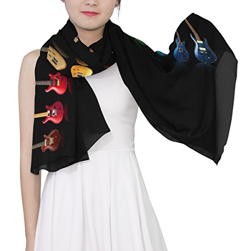 (BEATYG)/Accessories/Cold Weather Accessories/DIRECT FROM USA/Ethel Ernest Womens Silk Scarf Colorful Guitars Lightweight Shawl Soft Long Scarves