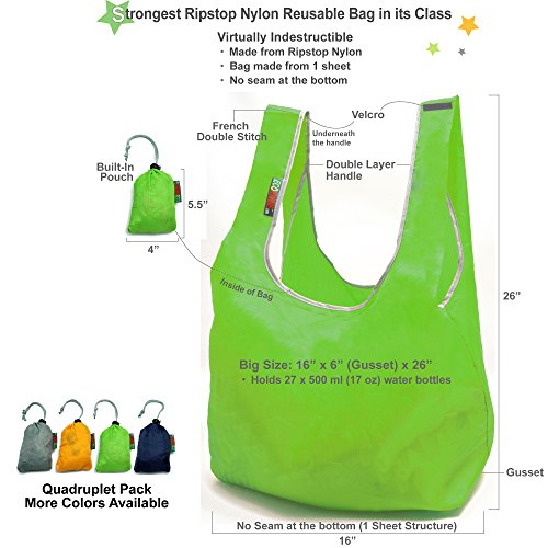 SUPER STRONG : 100% Ripstop Nylon with Several Innovative Features such as Folded Handle with Edge Lining and One Sheet Structure with No Seam at the Bottom. The Strongest Bag in Its Class - Virtually Indestructible.