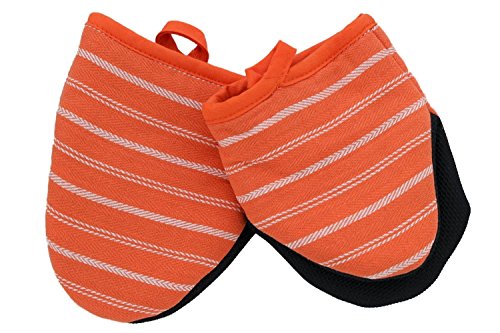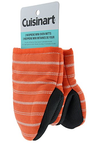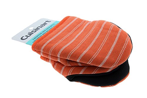 Cuisinart Twill Stripe Mini Oven Mitts w/Neoprene for Easy Gripping, Heat Resistant up to 500 degrees F, Orange- 2pk
