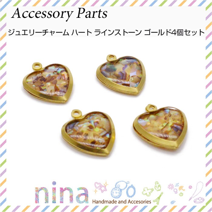 ■商品名:ジュエリーチャーム ハート ラインストーン ゴールド 4個セット