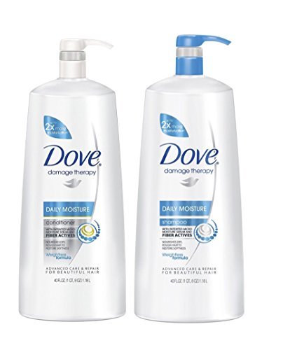 -. Binding : Misc. -. Brand : Dove -. EAN : 7245192621616 -. Feature : Jumbo Set Each Bottle Contains 40 With Easy To Use Pump / Dove Daily Moisture Shampoo and Conditioner system moisturizes for up to 5X smoother hair in just one wash vs. non-conditioning shampoo Dove Daily Moisture Conditioner contains Pro-Moisture Complex and goes to the hair's cellular level creating healthy-looking hair / Get hair that is touchably smooth and easy to manage with Dove Daily Moisture Conditioner / Dove Daily Moisture Conditioner contains Pro-Moisture Complex and goes to the hair's cellular level creating healthy-looking hair / Nourish your dry, dull hair with Dove Daily Moisture Conditioner to restore your hair's softness -. IsAdultProduct : 0 -. MPN : 5148576 -. NumberOfItems : 1 -. PackageQuantity : 1 -. PartNumber : 5148576 -. ProductGroup : Beauty -. ProductTypeName : BEAUTY -. Title : Dove Damage Therapy Daily Moisture 40 Oz Jumbo Shampoo + Conditioner Duo Set