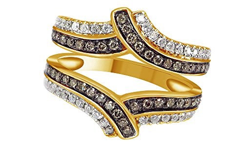 -. Title : Brown & White Natural Diamond Engagement Ring Wrap Guard Enhancer Ring 14K Solid Gold (0.63 Ct)