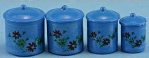 This set of 4 metal canisters with removable lids would make a wonderful addition to your miniature home.
