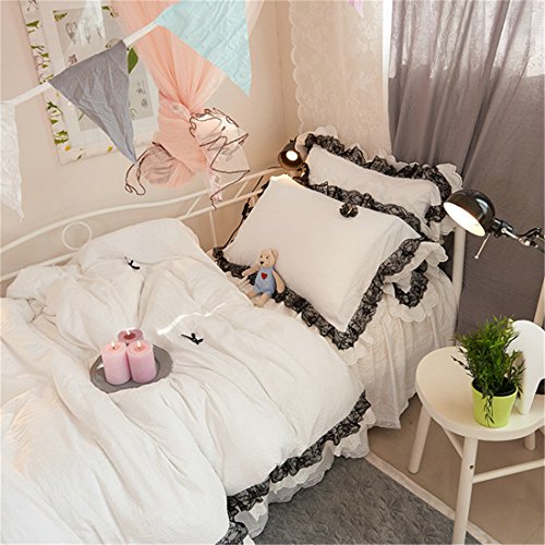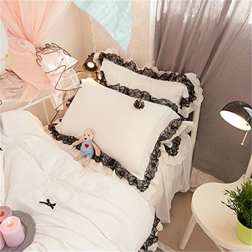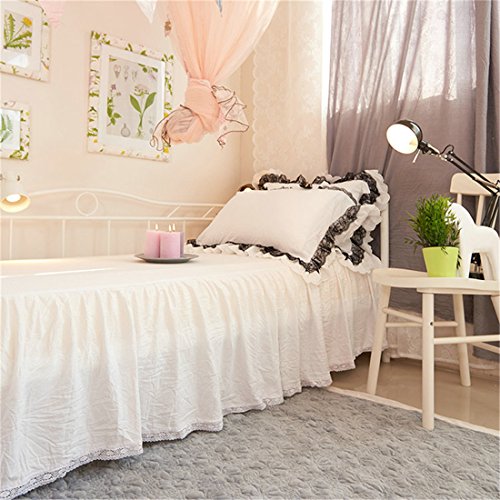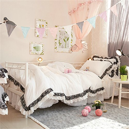 TWIN SIZE (5ft Bed) 1-piece Duvet Cover 59 by 79 inches (150 by 200cm) 1-piece Bed Skirt 47 by 79 inches (120 by 200cm) 2-piece Pillow Cases 19 by 30 inches (48 by 74cm) FULL SIZE (5ft Bed) 1-piece Duvet Cover 79 by 91 inches (200 by 230cm) 1-piece Bed Skirt 59 by 79 inches (150 by 200cm) 2-piece Pillow Cases 19 by 30 inches (48 by 74cm) QUEEN SIZE (6ft Bed) 1-piece Duvet Cover 79 by 91 inches (200 by 230cm) 1-piece Bed Skirt 71 by 79 inches (180 by 200cm) 2-piece Pillow Cases 19 by 30 inches (48 by 74cm) LARGE QUEEN SIZE (6ft Bed) 1-piece Duvet Cover 87 by 94 inches (220 by 240cm) 1-piece Bed Skirt 71 by 79 inches (180 by 200cm) 2-piece Pillow Cases 19 by 30 inches (48 by 74cm) Features 100% Washed Cotton,a slight wrinkle,like old style.Feel like super soft,and comfortable. Candy color with lace ruffle design,sweet and cute style. Reactive Dying,Non-Fading,Non-Pilling, Non-Wrinkle. Fabric Density:128x68,Fabric Count:40x40 Floral ruffles korean bedding set is Ideal choice for your princess dream Cares Machine Wash in Cold, Dry on Low. Our Customer Satisfaction Money-Back Guarantee If you are not satisfied with the Lotus Karen Bedding Sets,just return it within 30 days for a full refund. No questions asked,no hassle. 0