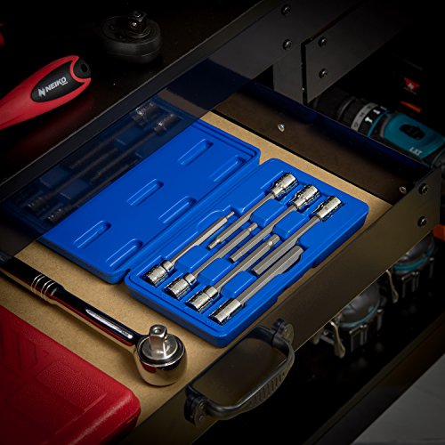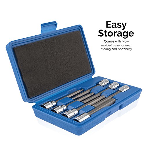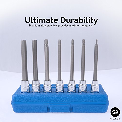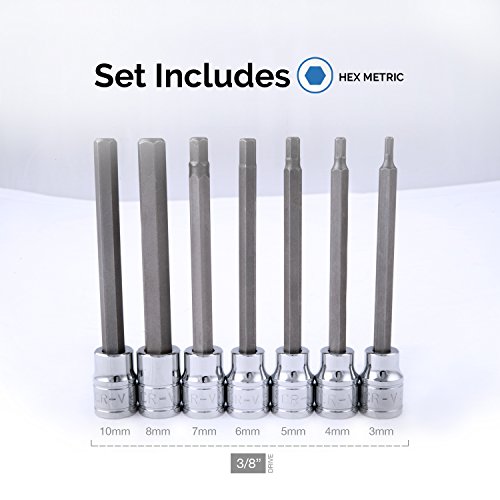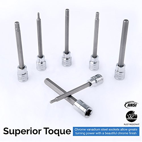 EXTRA LONG SET: Includes extra-long set (110mm x 3, 4, 5, 6, 7, 8, and 10mm) of hex bit sockets to access tight spaces such as European car suspensions