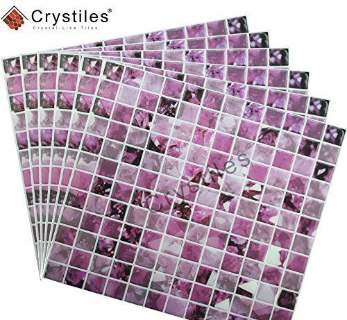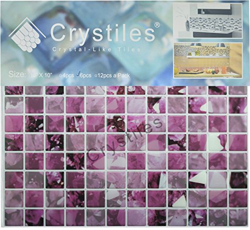 Crystiles Peel and Stick Self-Adhesive DIY Backsplash Stick-on Vinyl Wall Tiles for Kitchen and Bathroom Décor Projects, Item# 91010853, 10” X 10” Each, 6 Sheets Pack