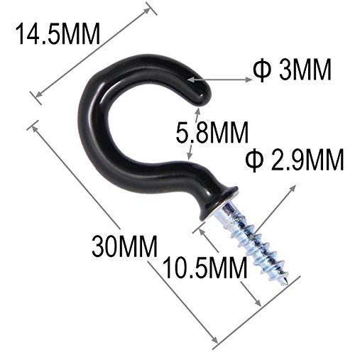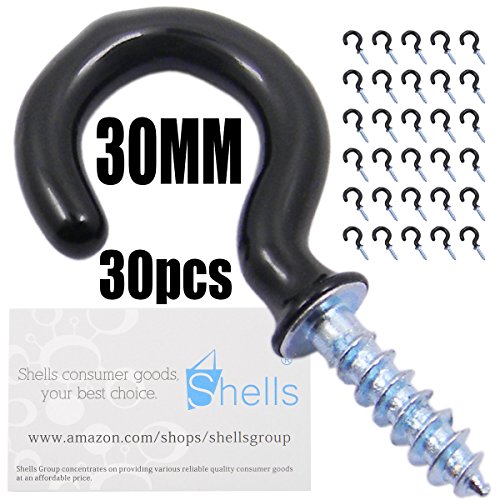 Shells 30PCS Black Color 30MM Vinyl Coated Hooks Cup Hooks Round End Screw Hooks Self-tapping Screws Hooks Question Mark Shape Hooks
