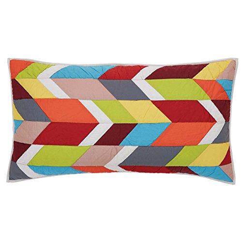 - Multi-colored patches create modern arrow design offset with textured natural shade cotton flax