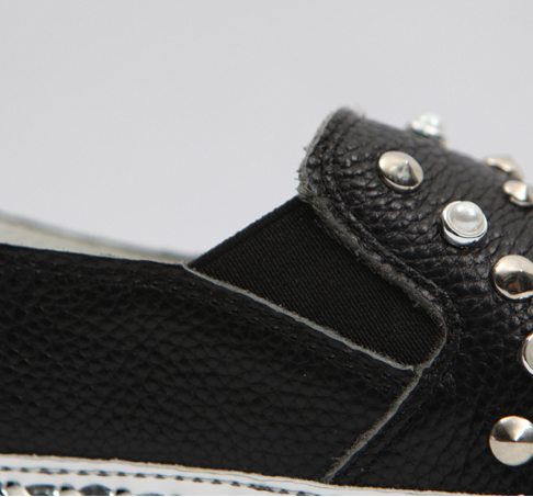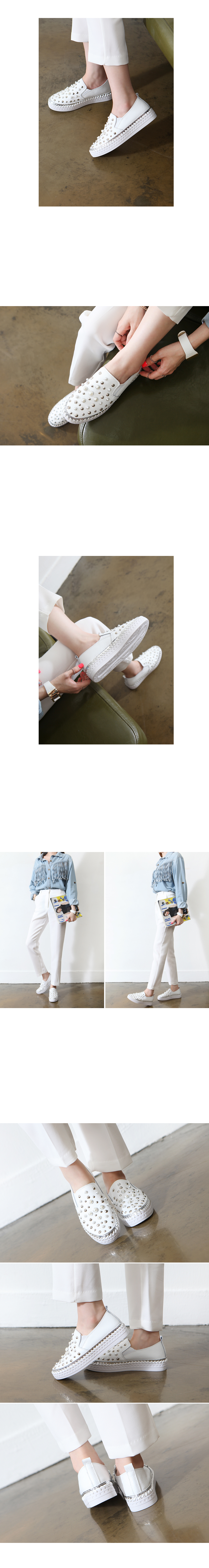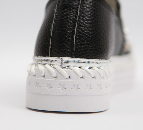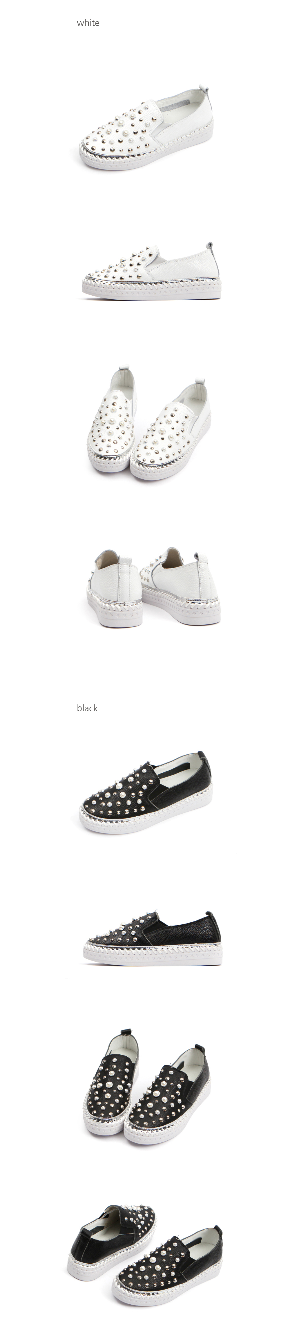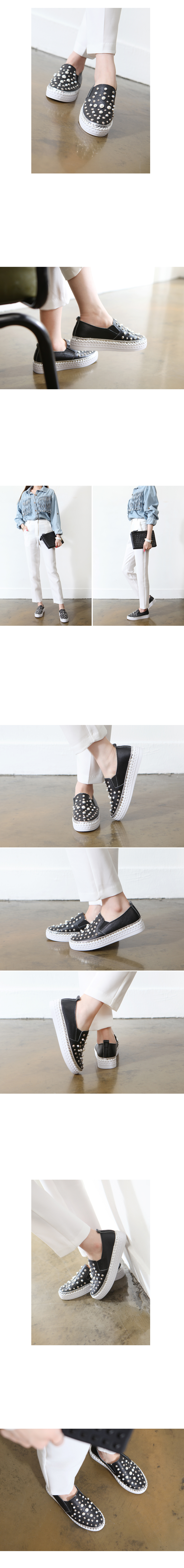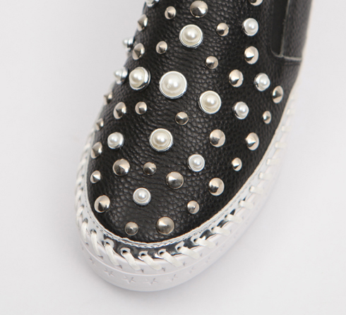 Natural leather pearl stud Key height Slip-on Women Women's Tongue Handmade Shoes Shoes Sneakers