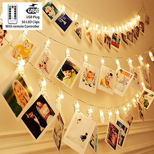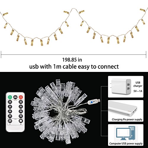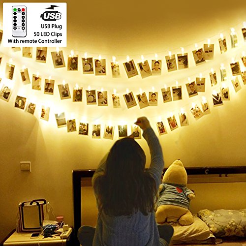 50 LED Photo Clip String Lights, HOPESOOKY 16ft USB Powered Remote Controlled Warm White Indoor Fairy String Lights with 8 Modes Choice for Hanging Photos Pictures, Cards and Memos