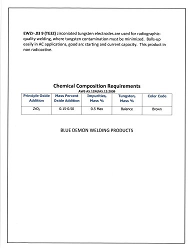Blue Demon EWZR-0.3 x 3/32" x 7" x 10 Pack .03 Zirconiated Tungsten Electrodes