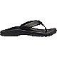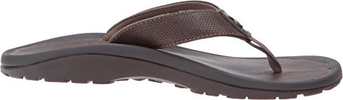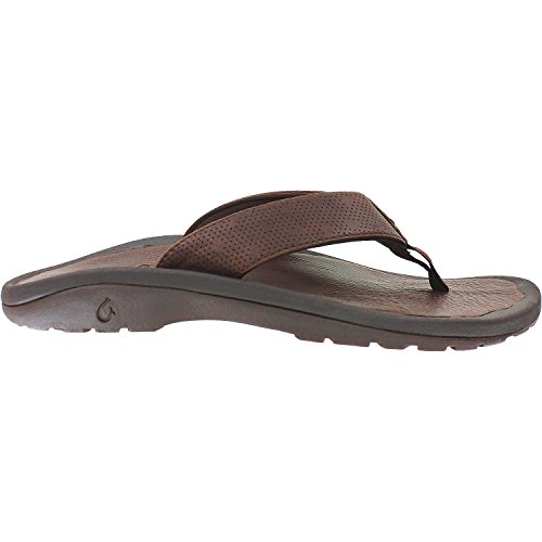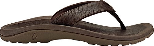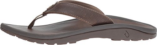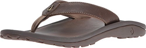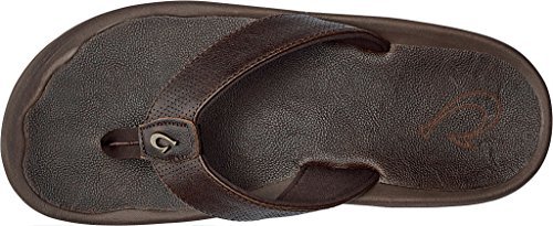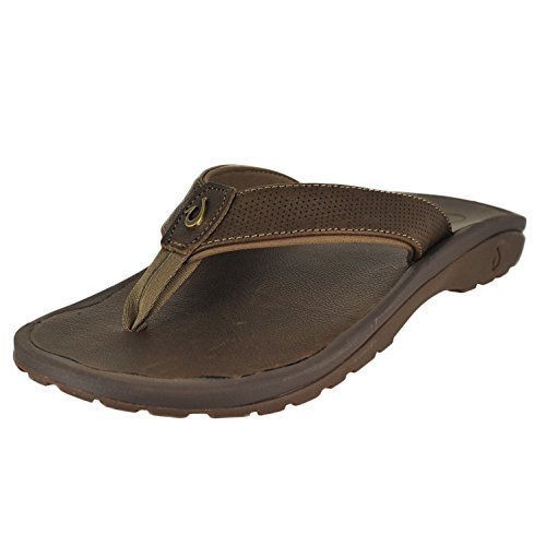 Laser-etched footbed logo and metal hook hardware on toe-post badge.
