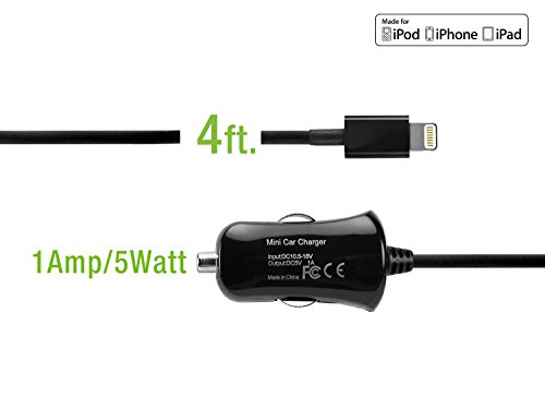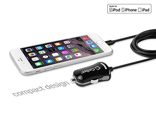 Ultra Compact 8 Pin Lightning Car Charger for iPhone 7, 6 and all other lightning devices - 5 Watt (1 Amp) – MFI Certified - by Cellet - Black