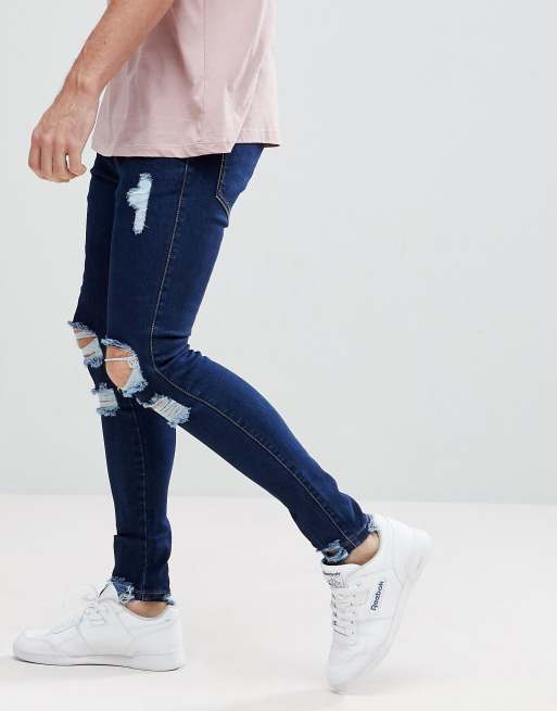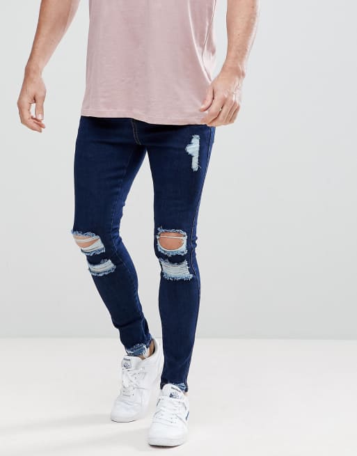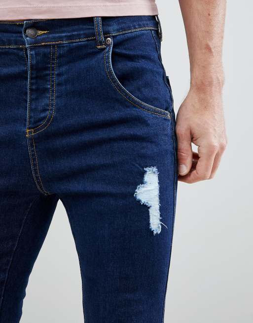 SikSilk Muscle Fit Jeans In Darkwash Blue With Distressing