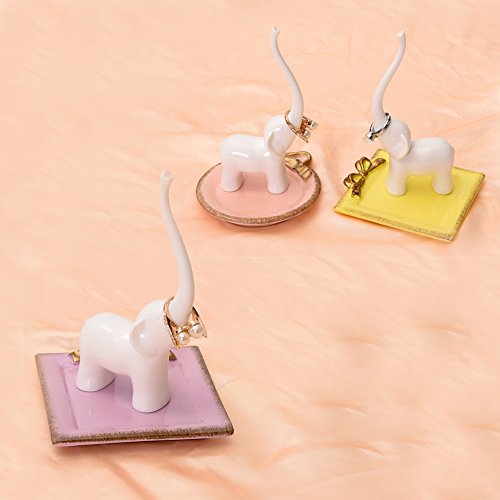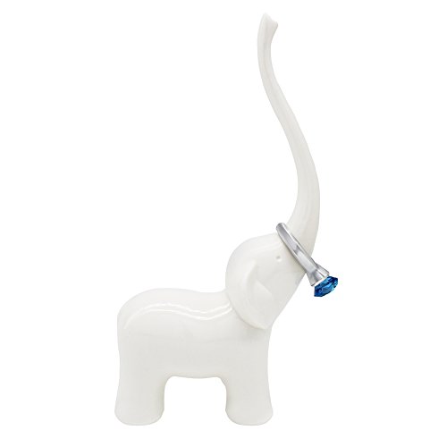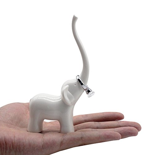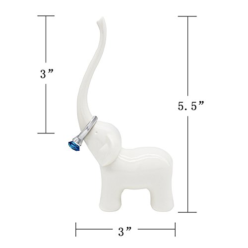 Cute White Elephant Ring Holder for Jewelry and Rings, Engagement Ring and Wedding Band Display, 5.5" Height