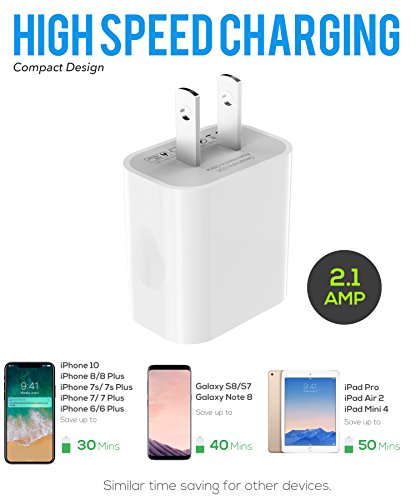 iPhone 8 Charger set , iPhone X / 8 / 8 Plus / 7 Plus / 7 /6S plus / 6S / 6 Charger 5W – 2.1 Amp Power adapter Apple MFi Certified Lightning to USB Cable Kit by Ixir – (1 Wall Charger + 1 Cable)