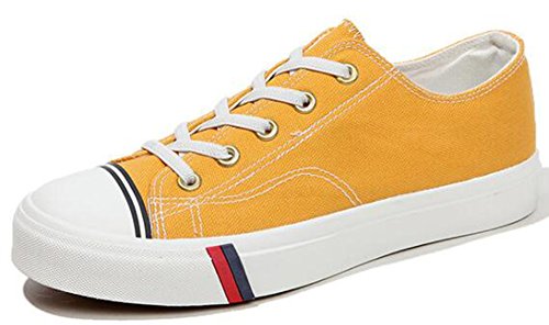 -. Title : IDIFU Women's Simple Round Toe Low Top Lace Up Flat Canvas Sneakers Skate Plimsolls