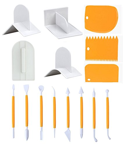 (Set of 15)4Pcs Fondant Smoother Smoothing Tool Cake Decorate Smoother+3Pcs Smoothing plate+8Pcs Cake Decoration Kit With Sculpting/Modeling Tools/Plunger Cutters