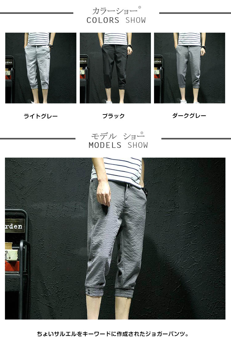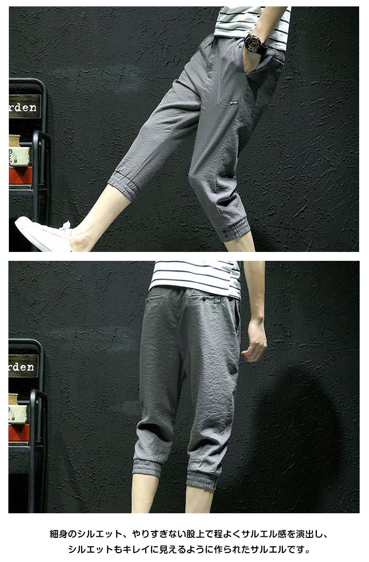 | ちょいサルエルをキーワードに作成されたジョガーパンツ。細身のシルエット、やりすぎない股上で程よくサルエル感を演出し、シルエットもキレイに見えるように作られたサルエルです。裾のリブがカジュアルだけど、生地感が程良くラフさを抑えて、大人なスタイルに!カジュアルなシャツでもデザイン性のあるドルマンTシャツでも相性が良く万能でお使い頂けます。 | |
