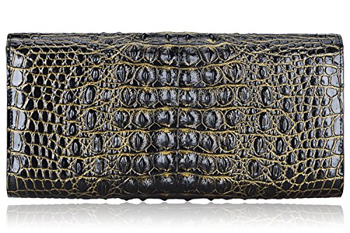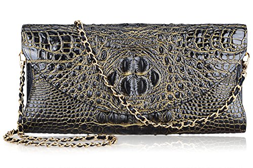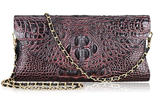 -. Brand : PIJUSHI -. Color : Violet -. Department : womens -. Feature : 100% genuine leather with embossed crocodile; / fabric lining; / buckle closure with gold hardware; / Size: L11.5"x H5.8" xW 2" ;with a 48" long leather strap ; weight:0.63 kg / Interior features : Large space for storage,a middle zipper pockets , 2 bill compartments; 1 open pocket in one side, 4 card slots in another side; -. Model : PIJUSHI-91781 Violet -. PackageQuantity : 1 -. ProductGroup : Shoes -. ProductTypeName : HANDBAG -. Size : One Size -. Title : PIJUSHI Women's Genuine Leather Embossed Crocodile Evening Party Clutches Handbags Shoulder Bag