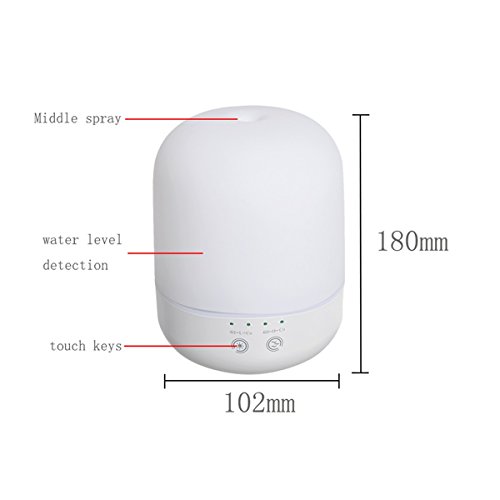 Three Working Modes: Intermittent Mist(30 seconds on/30 seconds off), Continuous Mist, Lights only. Content: 100 ml, Extra Long Power Cord: 6 feet, Item Size: 3.9 * 5.7in Weight: 11oz. Material: PP Hard Plastic, Working Time: 3 hours in continuous mode, 6 hours in intermittent mode.