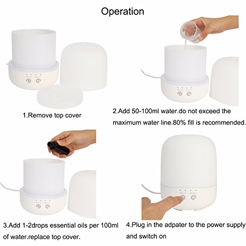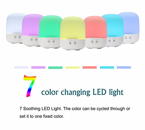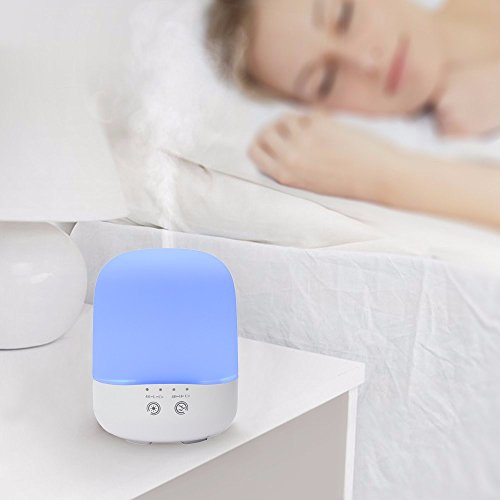 COMPACT & SIMPLE DESIGN--With the diffuser design, the cap of the diffuser is easy to take off, you won’t bother to unscrew the cap with great force although your hands is wet. Just gently take off the cap, add water or essential oil. And in the cycle of the Anti-skid bottom features with 7 Adjustable Soothing LED Lights ,work great as night light.