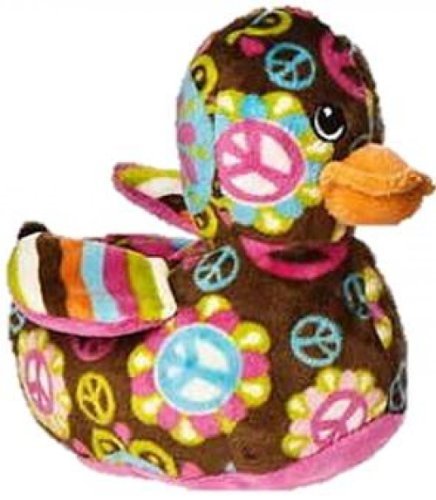 -. Binding : Toy -. Brand : Print Pizzazz -. Color : Brown, Pink -. Department : girls -. EAN : 0719771384904 -. Feature : Cute & cuddly plush duck - chocolate brown with retro peace sign & floral pattern in bright colors / Back of wings & bottom are bright pink / High quality Mary Meyer plush / Approximately 5" x 5.5" x 3" / One (1) stuffed ducky -. IsAdultProduct : 0 -. Label : Mary Meyer -. Manufacturer : Mary Meyer -. Model : 38490 -. ProductGroup : Toy -. ProductTypeName : TOYS_AND_GAMES -. Publisher : Mary Meyer -. Studio : Mary Meyer -. Title : Mary Meyer Plush Duck - 5 Inches - Chocolate Brown with Peace Signs -. UPC : 719771384904