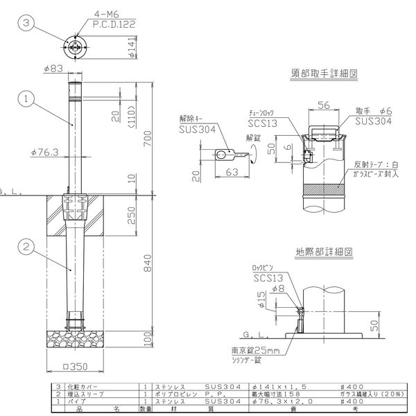 ●地中に埋設したスリーブ(さや管)に 、 ポール本体を