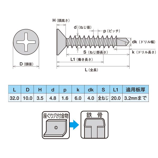 ●座ぐり穴付金物+鉄骨用ドリルビス