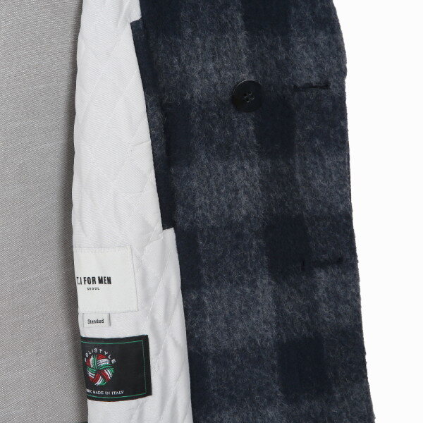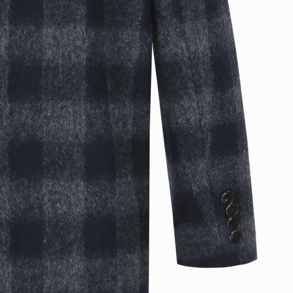 고급스러운 멀티 컬러 체크 패턴의 방모 코트 입니다.반더블 코트 디자인으로 히든 버튼 스타일로 제작되었으며, 무릎 정도까지 내려오는 길이감이 특징입니다 ^^정장 및 캐주얼 어느 룩에도 잘 어울리는 멋스러운 코트 입니다 ^____^