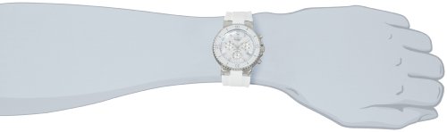 -. Feature : Round watch in stainless steel with logo on dial, knurl-edge crowns and lugs, and white silicone band / Ronda 5030d Swiss movement with analog display / Protective anti-reflective sapphire crystal dial window / Features chronograph subdials, date window, bidirectional bezel, and buckle closure / Water resistant to 330 feet (100 M): suitable for snorkeling, as well as swimming, but not diving