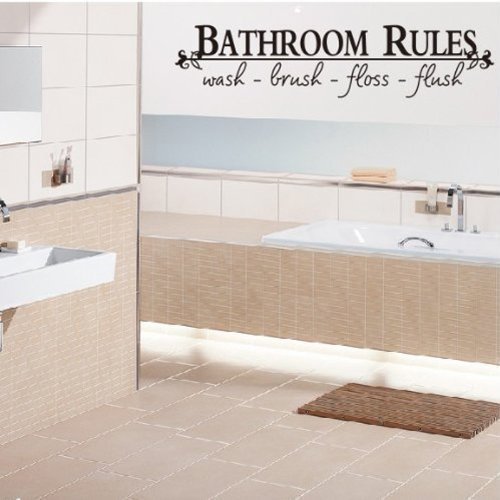 MZY LLC 5"*23" BATHROOM RULES Wash Brush Floss Flush Quote Saying Wall Sticker Home Decal Decor For Bathroom (BLACK, 1) Black, 23inches