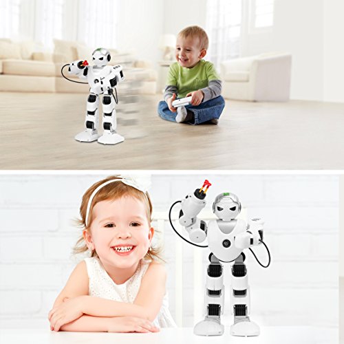 INTELLIGENT PROGRAM - 25 buttons on controller for you to motive the robot at any direction and at any playing way. Can connect several actions together and replay them in turn to meet what you want.