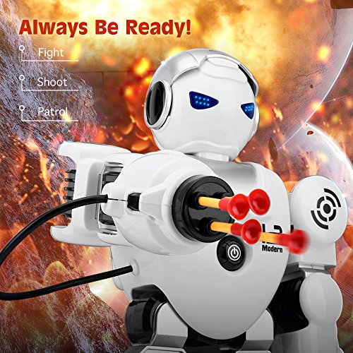 FUNCTION - Can control its flexible arm easily by Left Hand Up, Left Hand Down, Right Hand Up and Right Hand Down. Also can shoot in a fixed direction and randomly fight, sing, dance.