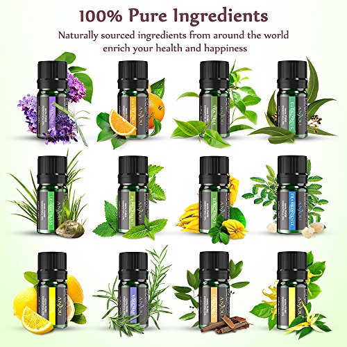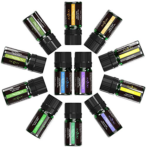 Essential Oils Set, Anjou Top 12 100 Pure Aromatherapy Essential Oil Kit, 12 x 5 ml (Lavender, Sweet Orange, Peppermint, Tea Tree, Eucalyptus, Lemongrass,...