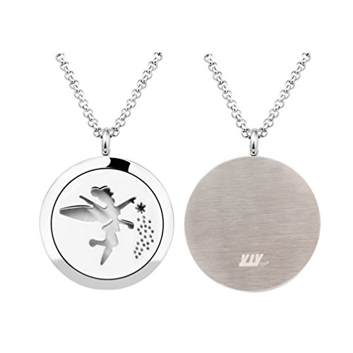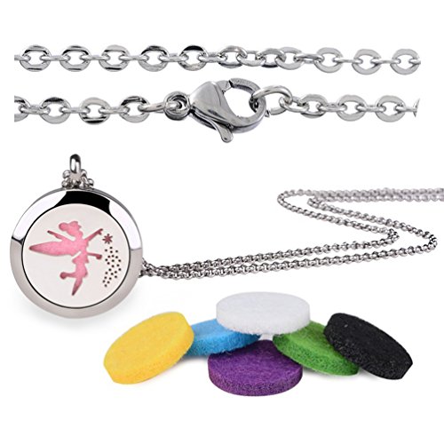 YJY Colorful Aromatherapy Essential Oil Diffuser Necklace - Perfume Hypo-Allergenic Stainless Steel Locket Pendant - Fashion Jewelry Gifts 24" Chain + 12 Felt Pads(Fairy)