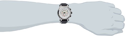 -. Feature : Chronograph features include 60 second, 60 minute timer, and GMT (24 hour) sub dials / Date window at the 4:30 position / Silver-tone case with a Silver-tone & Gun bezel and Black, genuine leather, strap / Precise quartz chronograph movement / Water-resistant to 30 M (99 feet) / Chronograph features include 60 second, 60 minute timer, and GMT (24 hour) sub dials / Date window at the 4:30 position / Silver-tone case with a Silver-tone & Gun bezel and Black, genuine leather, strap / Precise quartz chronograph movement / Water resistant to 99 feet (30 M): withstands rain and splashes of water, but not showering or submersion