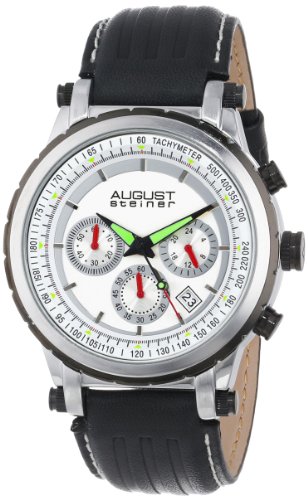 -. Title : August Steiner Men's AS8085SS Quartz Chronograph Silver-tone Black Leather Strap Watch