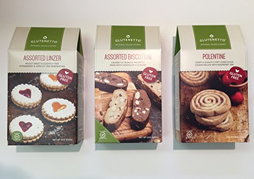 Gluten Free Cookies Glutenetto Gourmet Variety of 3: Asst. Strawberry / Apricot, Polentine, and Assorted Biscottini Plus a Bonus Free Gluten/Nut...