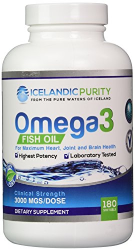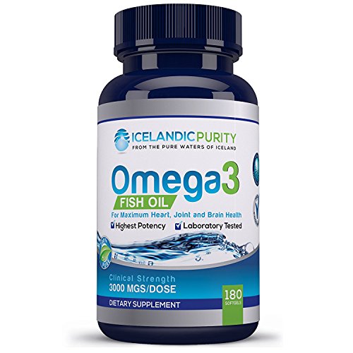 Icelandic Purity Omega-3 Fish Oil (180 COUNT BOTTLE) - Not Just the Purest Fish Oil (4 Times Stronger) - 3,000mg PER SERVING - 600mg DHA + 900 mg EPA