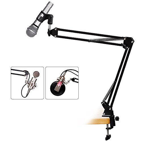 -. Feature : 【主たる用途】 マイクスタンドはテーブルに固定されたことで、利用者のハンズフリーという状態で、270度回転できるスタンドホルダーに優れ、マイクを移動せずにスタジオや、ラジオルーム、演習会などのシーンで楽に録音をしたりレコーディングしたりされることのできる楽器の補助工具です。 / 【二重バネによる安定感】 マイクアームの折り畳める両アームには上下に各二重バネ付きの上に、真ん中にあるネジの回しによって引っ張り力が生じるということで、デスクアーム本体の安定感をアップしてくれます。 / 【収納便利、移動自由】 マイクホルダーのアームはスチール製で、頑丈な特性に加え、伸縮も可能ですので、ご利用にならない際に、折り畳むだけで収納スペースを節約し、持ち運びも楽です。スタンドホルダーの部分がプラスチック製で、マイクへの傷も無し、270度軽く回転できますので、移動も自由です。 / 【揺れにくい卓上の固定構造】 マイクアームをテーブルに揺れ感無し完全に固定させるように、高品質のメタルで作られたクランプは固定幅6.5センチまで調節可能です。その上、テーブルのような平面に傷つかないように柔らかいゴムを採用した継ぎ目もあります。 / 【幅広い適用範囲】 学園際にある舞台公演や、研究センターの学会などの公の場で、スライドを見せたりスピーチを発表したりされる際に大活躍な卓上マイクスタンドです。先端のクランプに、相当の調整をすると、マイクの種類を問わず全ては対応できます。