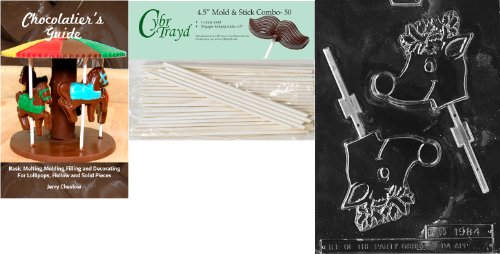 Cybrtrayd 'Large Reindeer Lolly' Christmas Chocolate Candy Mold with 50 4.5-Inch Lollipop Sticks and Chocolatier's Guide