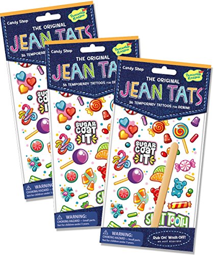 Studio : Peaceable Kingdom Publisher : Peaceable Kingdom Binding : Toy Product Description Kids love temporary tattoos because its always fun to show your colors - whether you like to wear a dinosaur on your cheek or a kitty on your hand, everyone can see what you love. Now Peaceable Kingdom has come up with a totally new, totally fun and totally easy way to show your colors on your clothing with Jean Tats - temporary tattoos for fabric! Jean Tats feature super fun graphics that require no heat to apply and that wash off during the next load of laundry - the easiest way to customize your look again and again! The tattoos work on most fabrics - simply cut out the tattoo, remove the backing paper, rub evenly onto your chosen clothing with the included wooden stick and carefully lift away the overlay. Now you're sporting your own unique look! A perfect party or sleepover activity - just what you expect from Peaceable Kingdom. Since 1983 play has been the heart and soul of Peaceable Kingdom. Silly play, special play, wholehearted play! We create experiences to help kids play well together, so they can play well in the world. Our games and gifts connect kids and families, encourage learning and self-expression and let imaginations soar. When play comes from the heart and feeds the soul, that's Peaceable Kingdom! 0