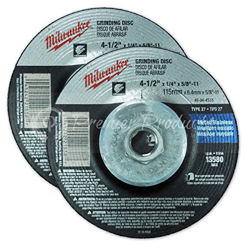 [Product Information]- 2 Milwaukee Premium Hubbed Grinding Wheels | 4-1/2-Inch X 1/4 X 5/8-Inch | 11 UNC For Metal & Stainless Steel