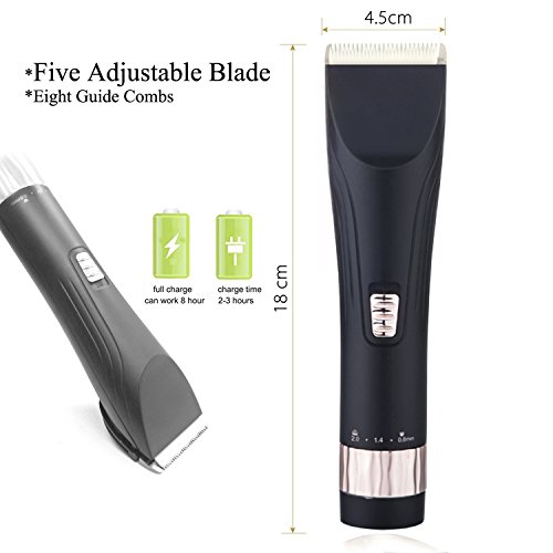 ★【Still worry about the BLADE would hurt you?】 Five Adjustable Blade + Eight Guide Combs definitely keeps you from worrying, It supports precise length setting adjustment range from 0.8mm to 2.0mm. Use guide combs or adjust the blade when you need to control hair lengths.