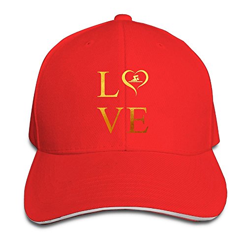 | (BXIU)/Accessories/Cold Weather Accessories/DIRECT FROM USA/BXIU Love Swim Gold Heart Unisex Baseball Caps Classic Adjustable Sandwich Caps |